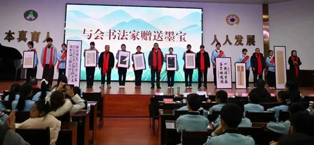 2025年12月26日,四川省眉山市硬笔书法家协会组织名家团队赴仁寿县华兴中学,成功举办了以参与第九届师生书画展开幕式为核心、涵盖捐赠作品、书签写赠、硬笔书法专项指导及观展交流等环节的“书法进校园”系列活动。此次活动将专业书法艺术深度融入校园美育,通过艺术家与师生的近距离互动,生动诠释了书画艺术陶冶情操、启迪智慧、滋养心灵的育人功能,不仅极大地激发了学子们对传统文化的热爱与传承意识,也为学校营造崇文尚艺的校园文化氛围、落实立德树人根本任务提供了鲜活的实践案例,是推动中华优秀传统文化在青少年中创造性转化与创新性发展的一次有益尝试和成功示范。未经授权 不得转载文图 |蒋勇军 钟泽伦