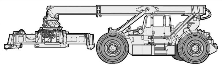 越野型集装箱装卸车是一种专用起重车辆,用于搬运国际标准化组织(ISO)标准集装箱。下图展示了一种越野型集装箱装卸车(通常简称RTCH)。该车辆可将集装箱放置到卡车车厢或集装箱拖车上,也可在堆场内将集装箱堆码至最高三层。在岸边作业时,该装卸车可涉水行驶,最大水深可达车轮轮毂高度。