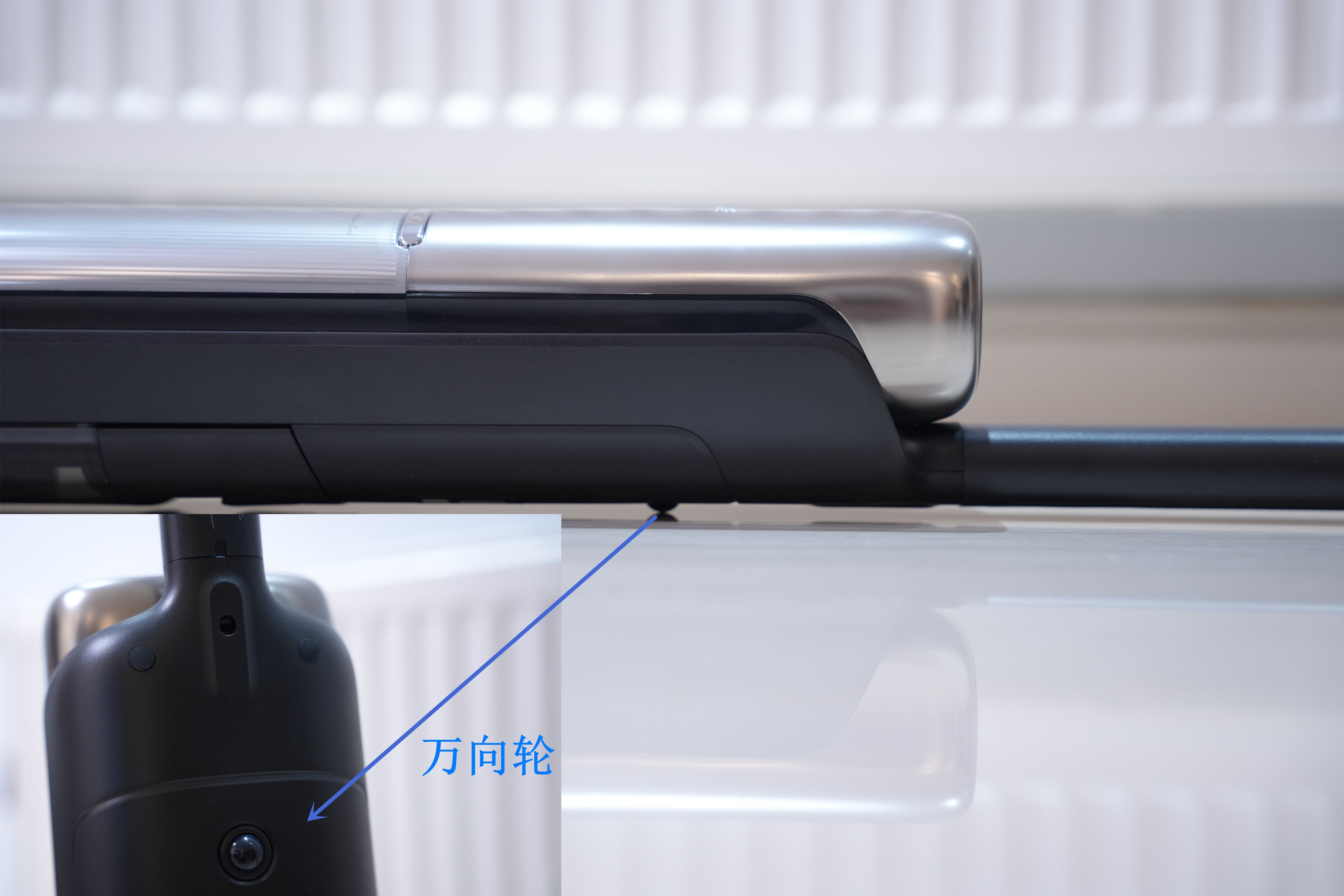 为了解决平躺模式下的移动难题,机身背部增加了一个360°万向轮,这个看似微小的改动,在实际清洁床底、沙发底等低矮空间时,带来了体验上的巨大飞跃,不再需要生硬地拖拽,而是可以丝滑地进行横向或斜向移动。