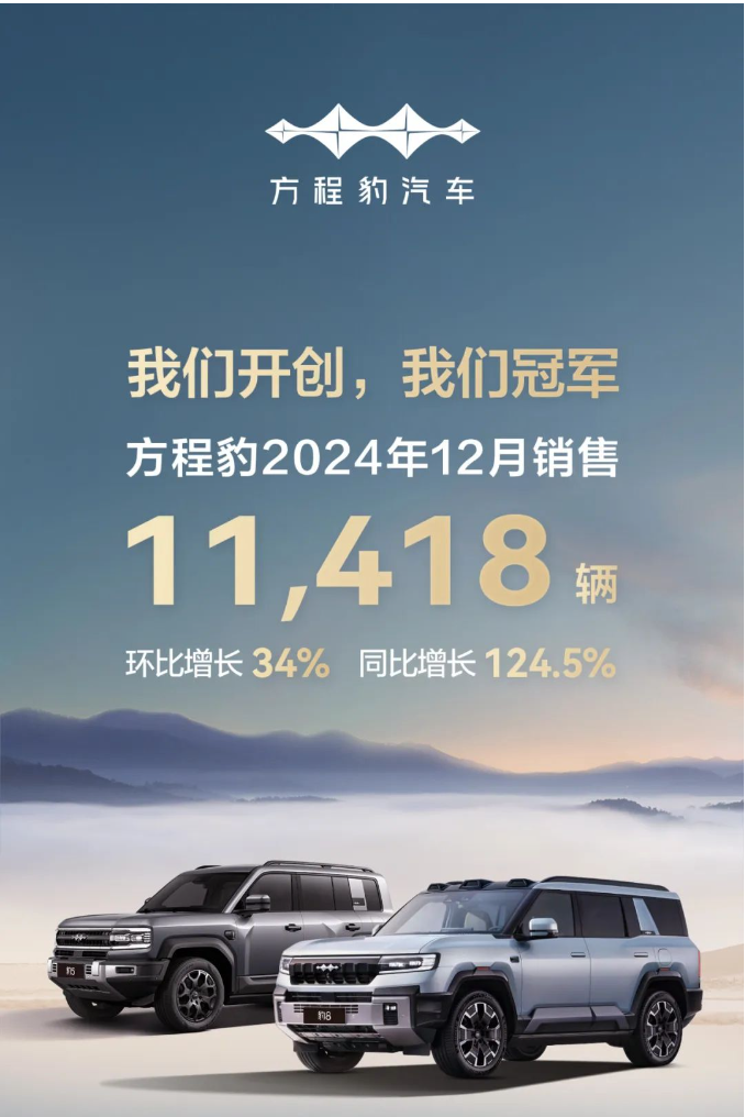 以方程豹为例,该品牌在12月销量破万,以超过30万的均价领先细分市场,成为了硬派新能源越野的破局者跟领导者,实现了量价齐升,给比亚迪中高端之路带来了很大的信心,进入2025年,相信随着唐L汉L等重磅车型的推出,比亚迪会继续给我们带来惊喜。