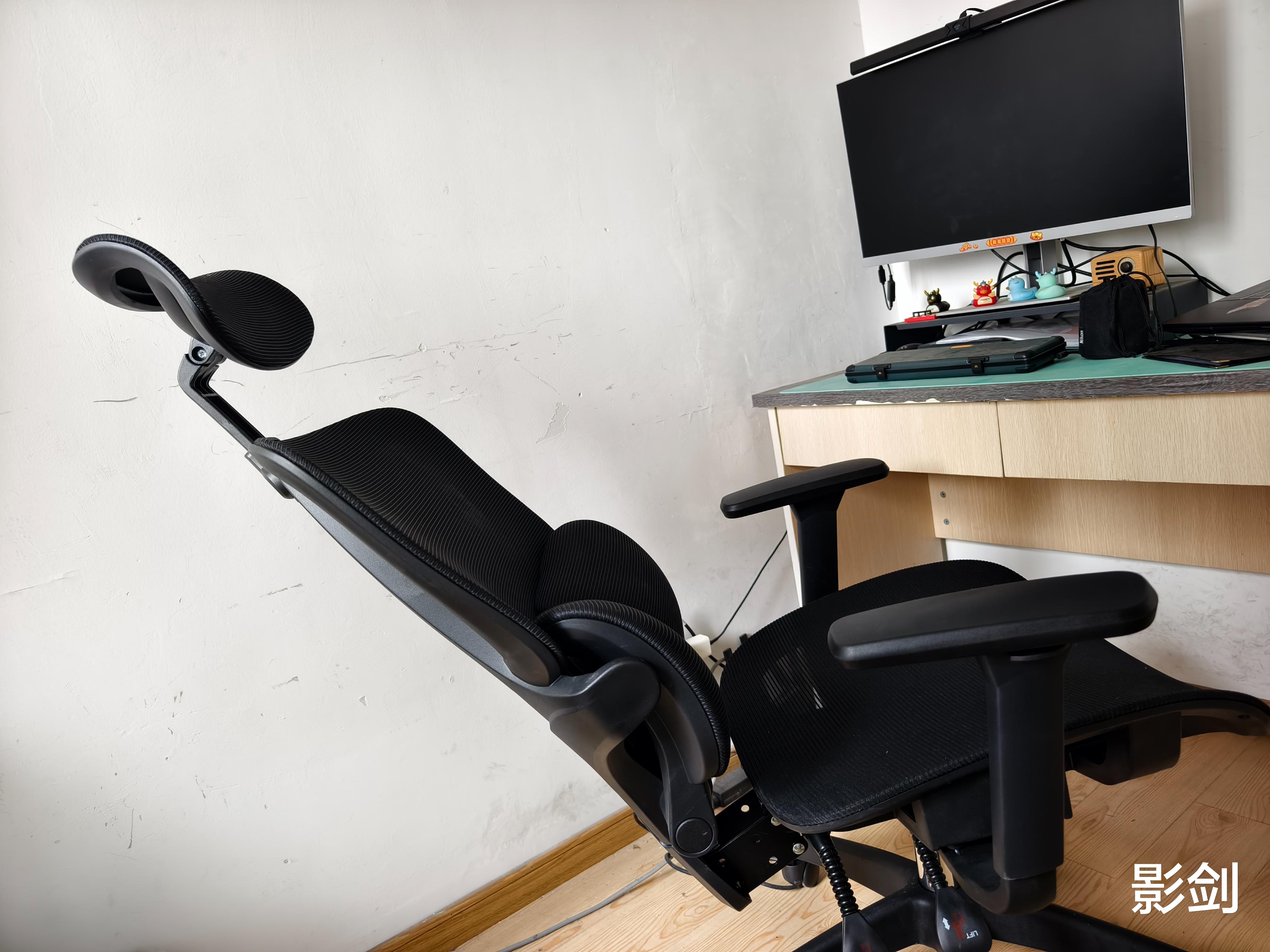 椅子采用第六代重力联动底盘,支持 145° 的大角度后仰,起身也毫不费力。无论是日常工作的 90° 坐姿,还是 135° 观影追剧,甚至 145° 深度躺靠,都能随心切换。后仰操作顺滑无比,体重轻的人后仰轻松,像我这样微胖身材的人起身也不费劲,为使用者提供了全方位的舒适体验。