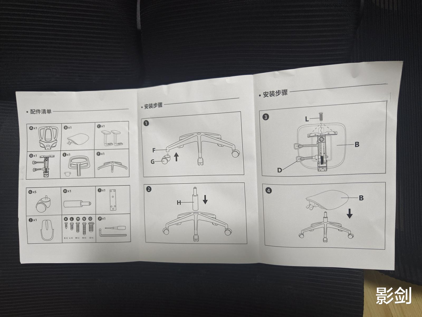 收到椅子后,我发现它的安装过程非常简单。所有部件都有清晰的标识,配件也一应俱全。随附的说明书图文并茂,每一步都有详细的说明。我按照步骤,先将轮子安装到椅脚上,这一步只需要将轮子对准孔位轻轻按压即可,轮子与椅脚的契合度很高,安装起来毫不费力。