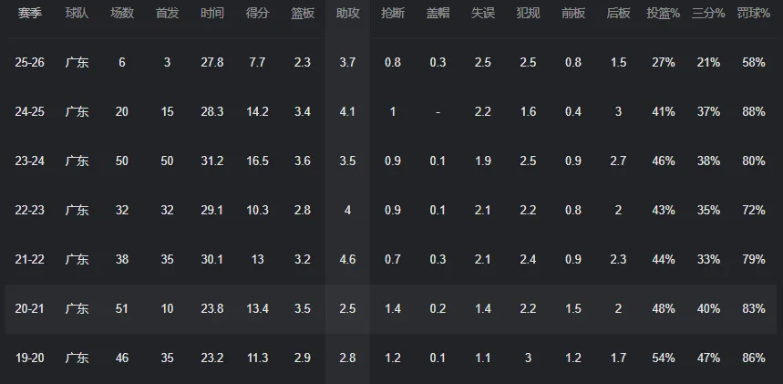 本赛季胡明轩各项数据除新秀赛季以来最低,场均得分只有7.7分,比起上赛季都直接砍半了,这是广东球迷最无法接受的。好消息是昨晚胡明轩表现终于有点回暖了,希望能够继续保持住!