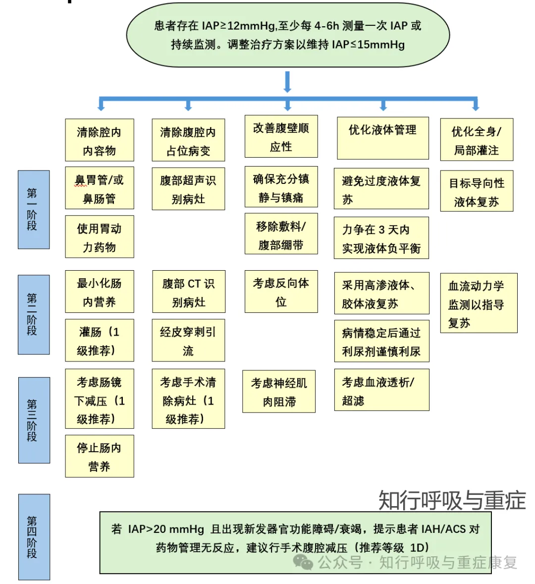 图5 腹内高压的处理(改编自2020,Ventilation in patients with intra-abdominal hypertension)
