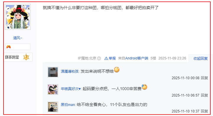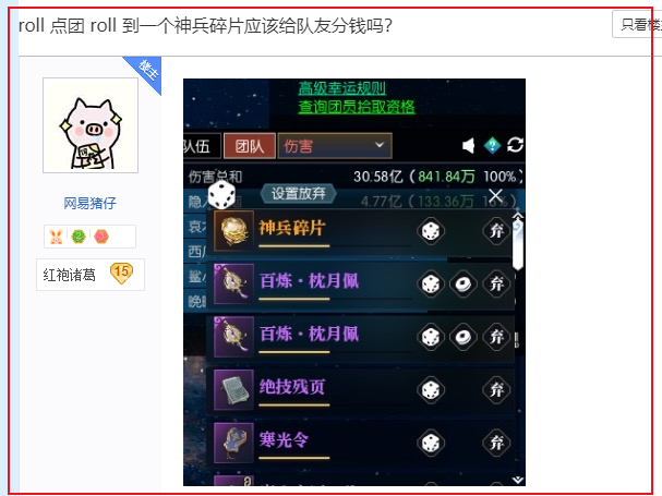 帖子一经发出,迅速引发热议,网友观点泾渭分明。支持“无需分钱”的网友认为,“愿赌服输”是ROLL点队的默认规则,组队前已明确分配方式,大叔凭运气获得道具,理应归其所有,不存在“必须分钱”的义务,强行要求分钱反而违背规则精神。