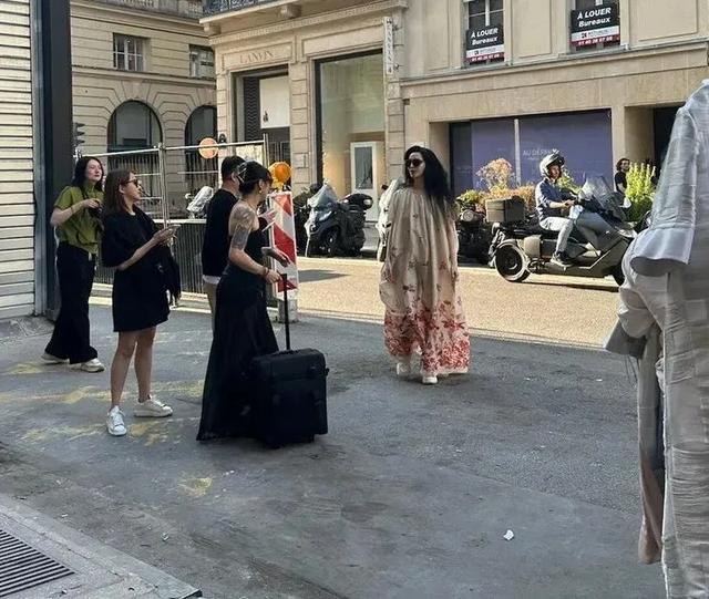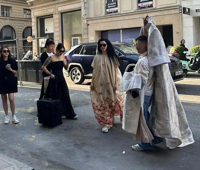 只能说在人群中的范冰冰确实太过耀眼夺目了!即使是这样不修边幅的披散着凌乱的头发,但是她的五官远远看去还是很出挑。