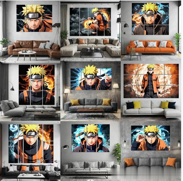 Prompt:Multi panel wall art of Naruto,style of digital art,living room,high definition,8k,