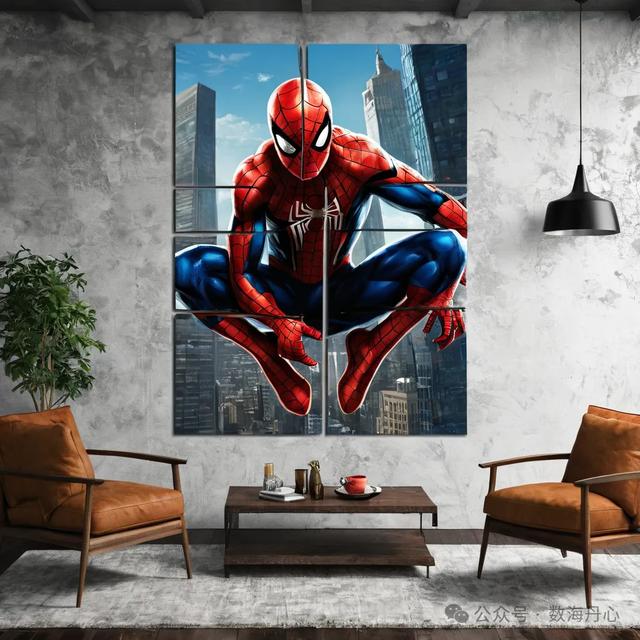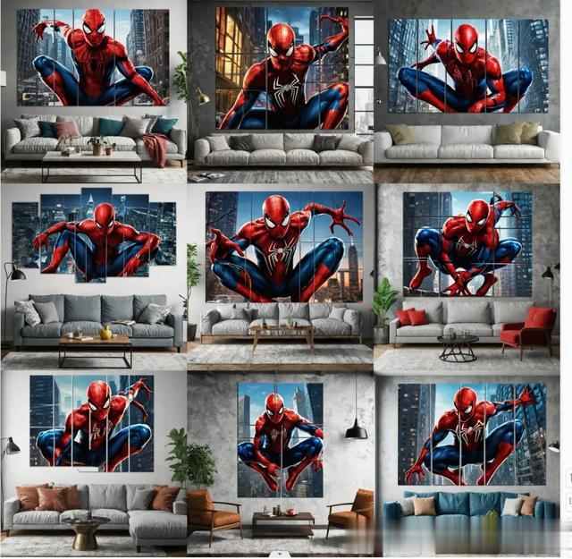 Prompt:Multi panel wall art of Spider-Man,style of digital art,living room,high definition,8k,