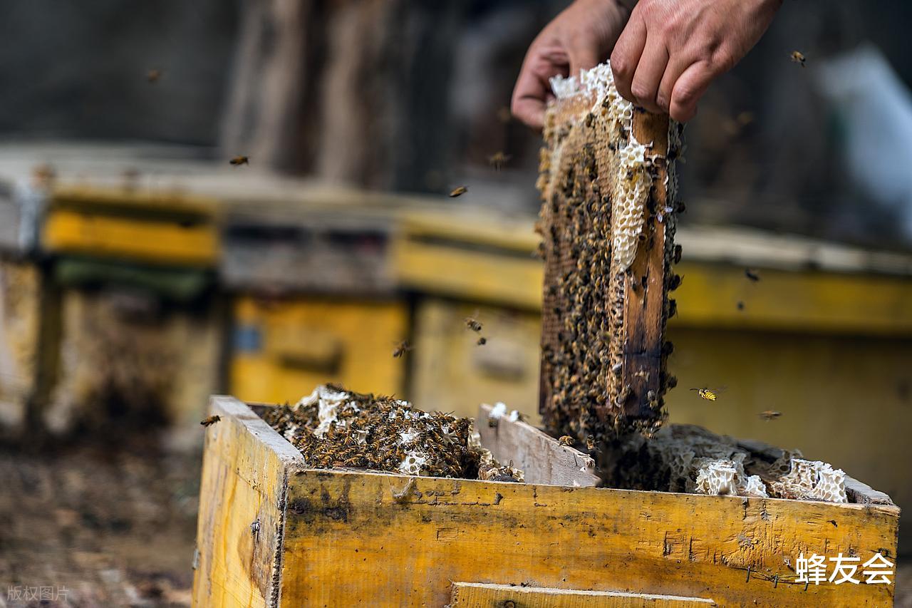 蜂王停产:营养不足,卵巢萎缩,日产卵从1500粒跌至200粒,全年无收。 抖音口诀:"蜜源匮乏取蜜后,蜂群像逃荒;不喂浓糖不加粉,弃子停产全完蛋。"