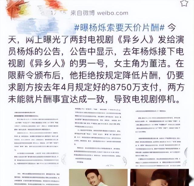 原来是杨烁与《异乡人》剧方曾协定片酬为8750万元,但基于“限薪令”的规定,剧方要求协商降低片酬,不料惨遭拒绝。