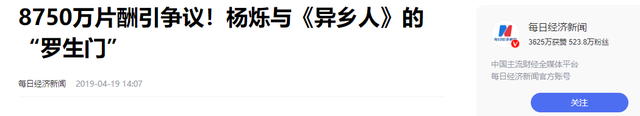 每日经济新闻-2019-04-19——《8750万片酬引争议!杨烁与<异乡人>的“罗生门”》