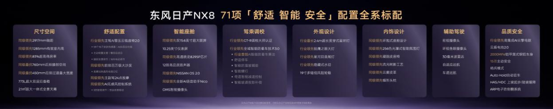 这份底气,源于东风日产23年来对“家”对“舒心”的坚守——让每一位家人的每一次出行更安心、更从容。而对于用户而言,NX8,新的是体验,新的是认知;对东风日产来说,诚意的价格政策和顶格满配的产品实力始终如一。