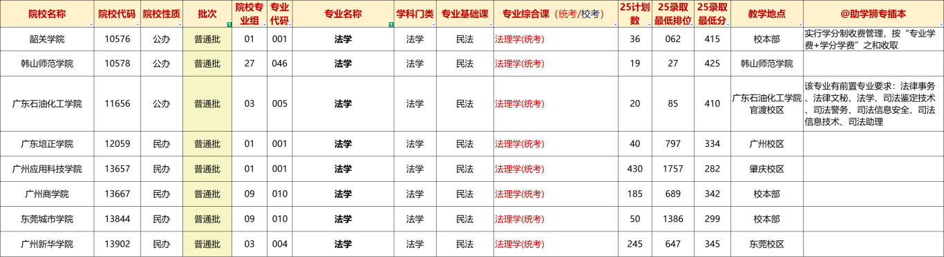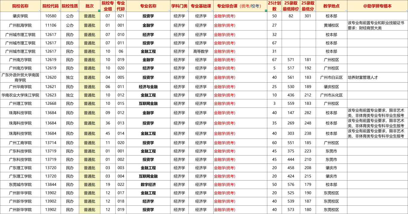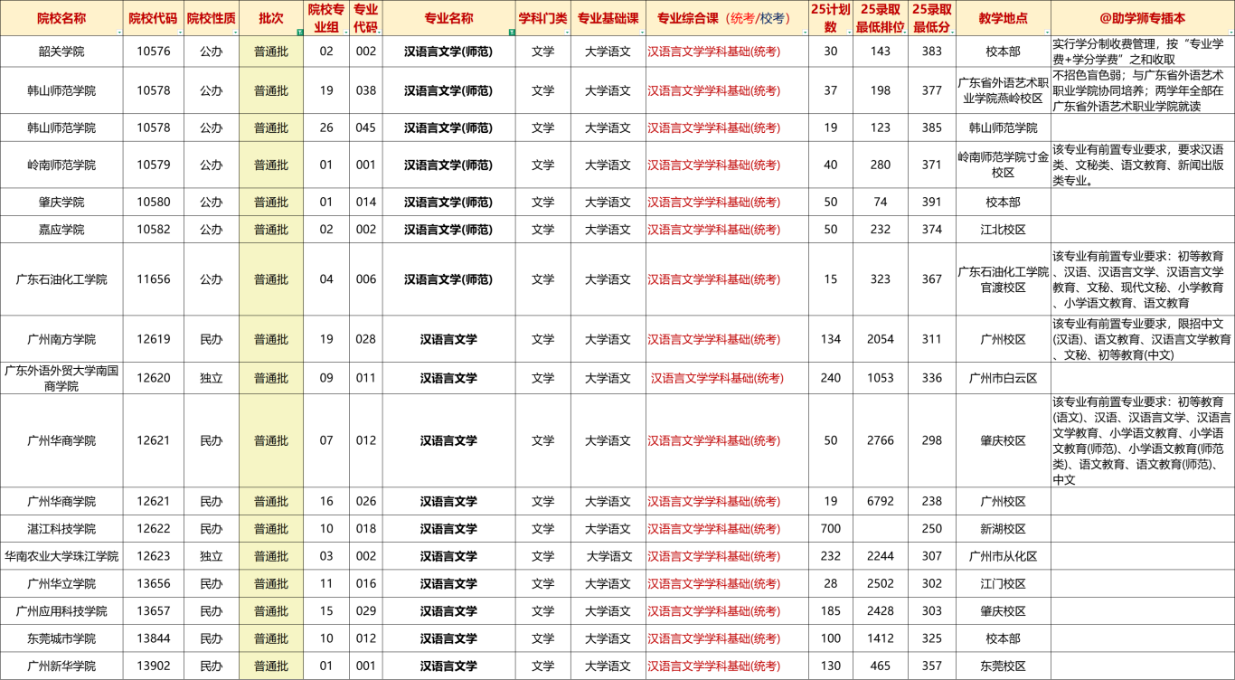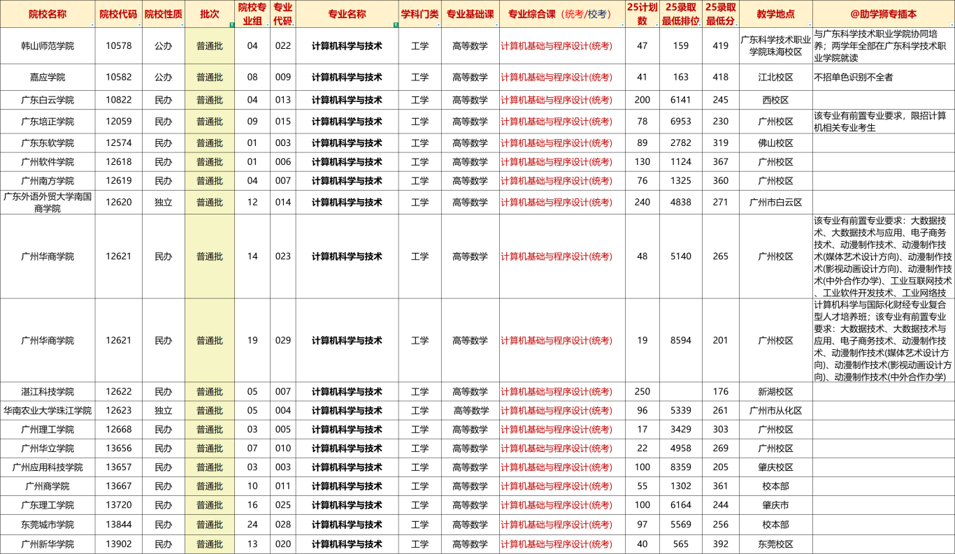广东专插本可报院校&投档情况: