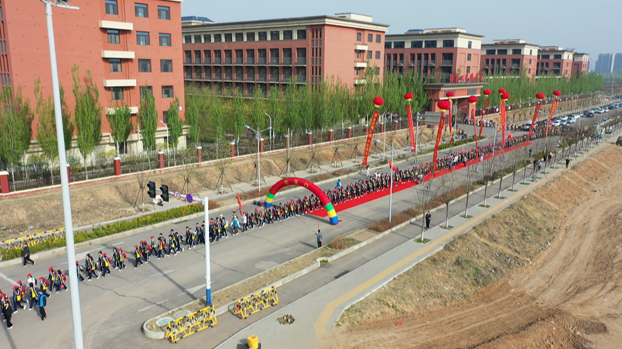 “出发!”号令响起,校门口鼓声骤起,鼓乐队红绸飞扬。千名学子昂首阔步,踏着鼓点走出校门,迎着朝阳汇成一道青春的洪流。队伍如长龙蜿蜒,旗帜猎猎作响,一场关于成长、坚持与蜕变的行走正式拉开帷幕。