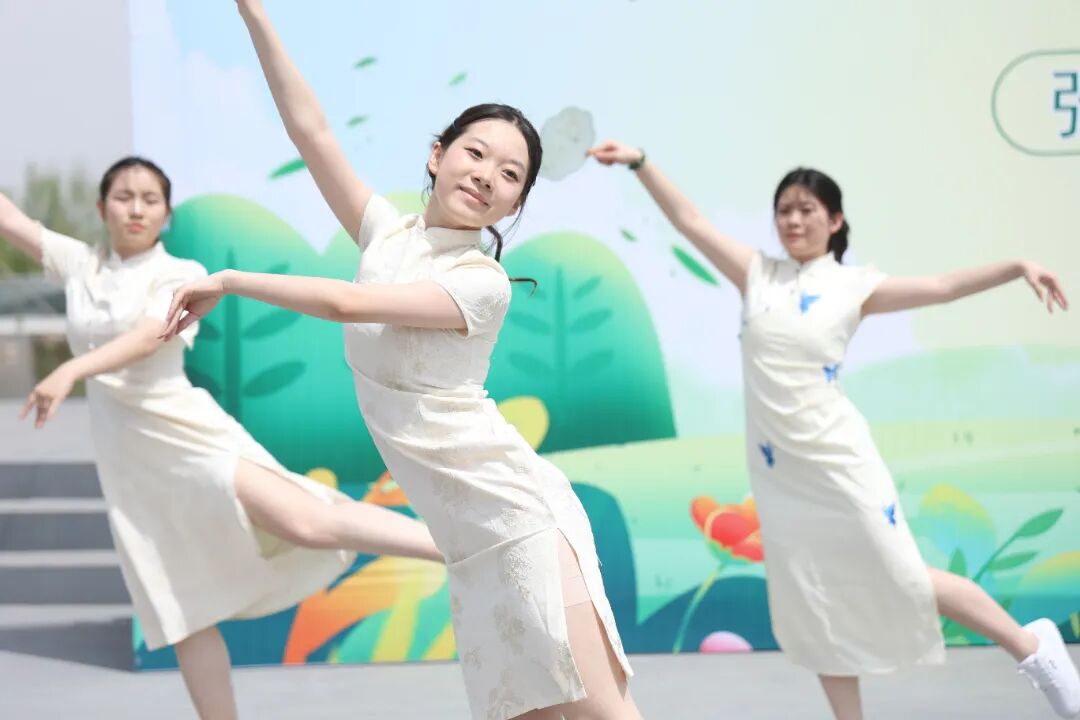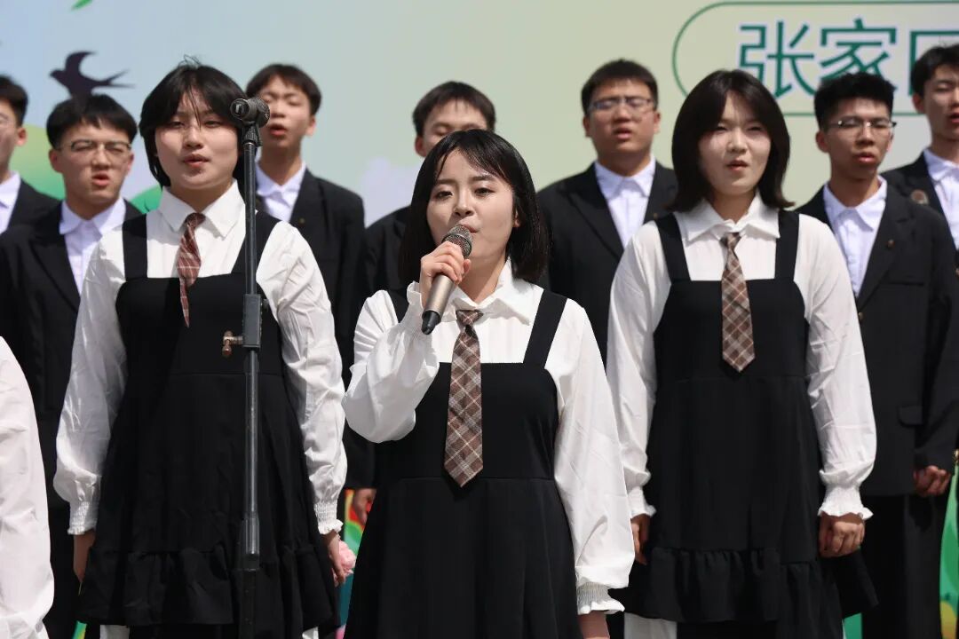 啦啦操《oh》活力登场,少女们笑容灿烂、舞姿灵动,瞬间点燃全场热情;古典舞《入画江南》婉转而至,水袖轻扬、步履翩跹,将江南的柔美与东方的雅韵带到塞外山川,令人沉醉;齐声高唱《祖国不会忘记》,雄浑的歌声在山谷间回荡,青春的热血与家国情怀在此刻交汇升腾,激荡着每一颗年轻的心。