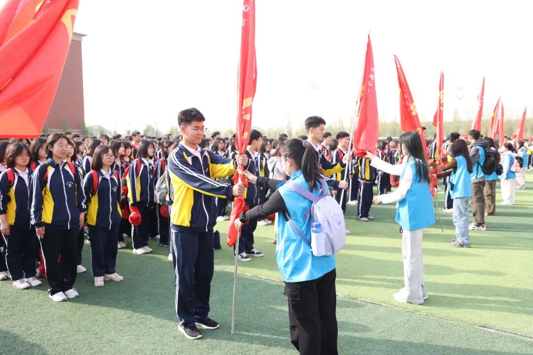 清晨,阳光初镀校园,运动场上已是旗帜飘扬、意气风发。两千余名高二学子整装列队,目光清澈而坚定。出征仪式上,国歌嘹亮,红旗冉冉,少年们挺立的背影写满了十八岁的庄重与热望。