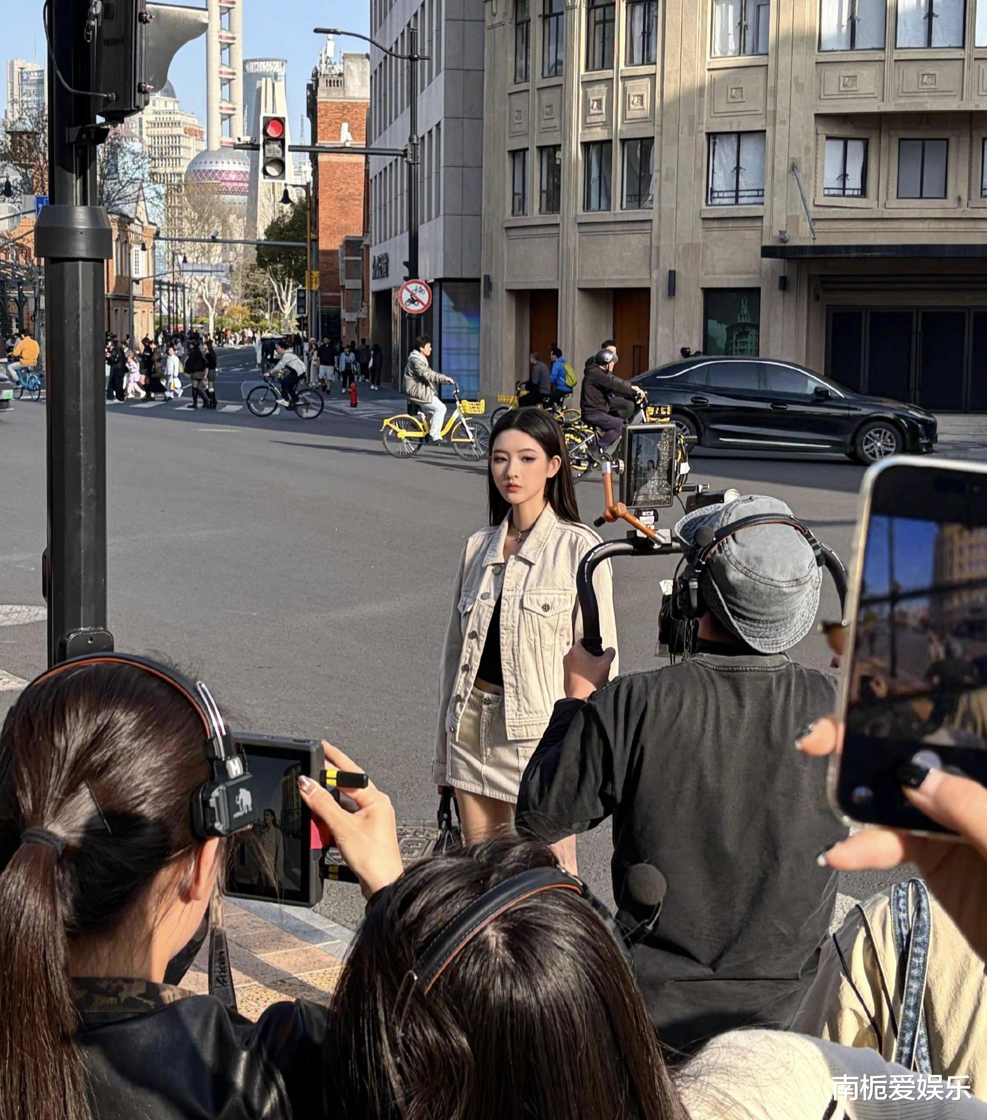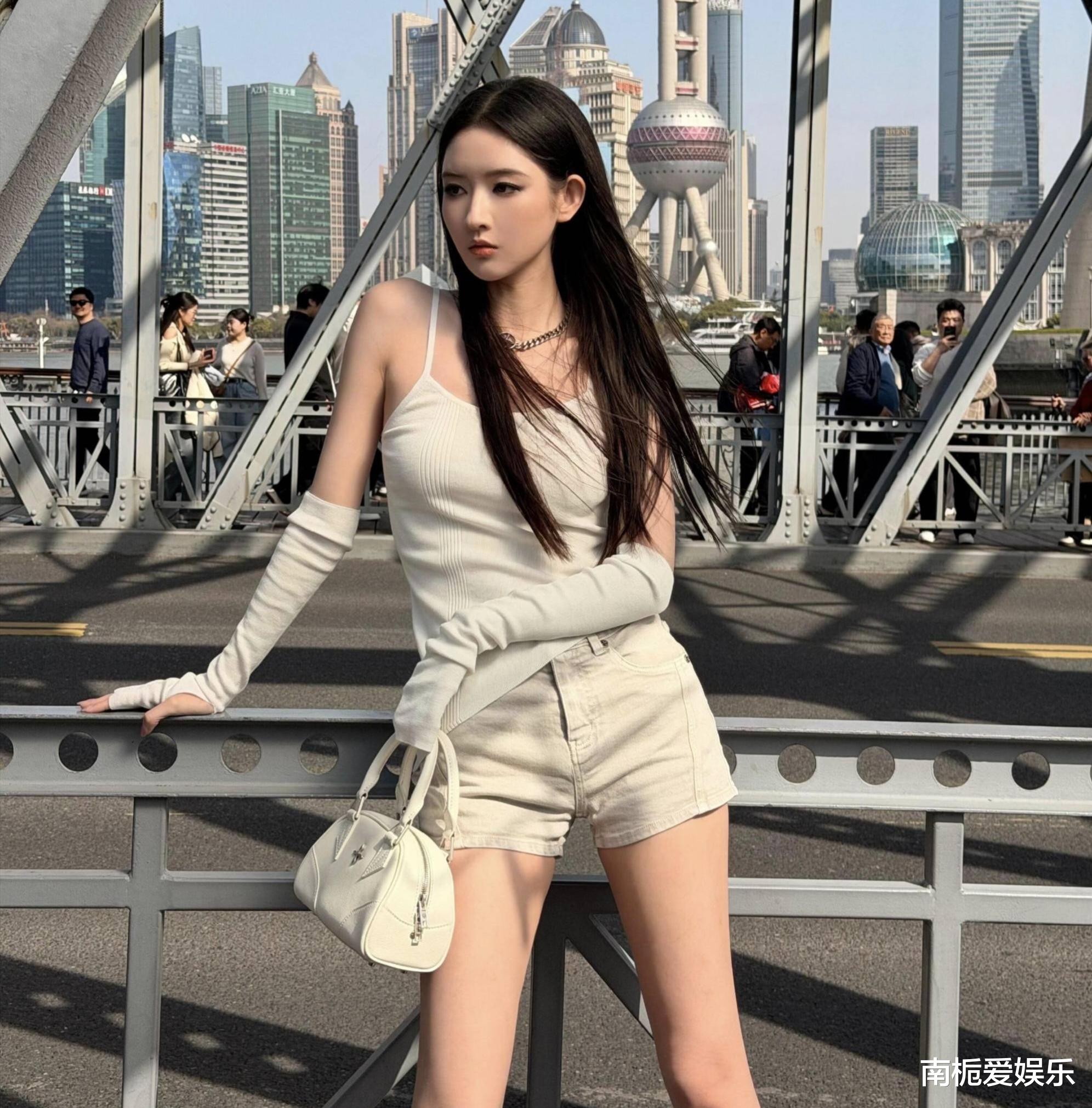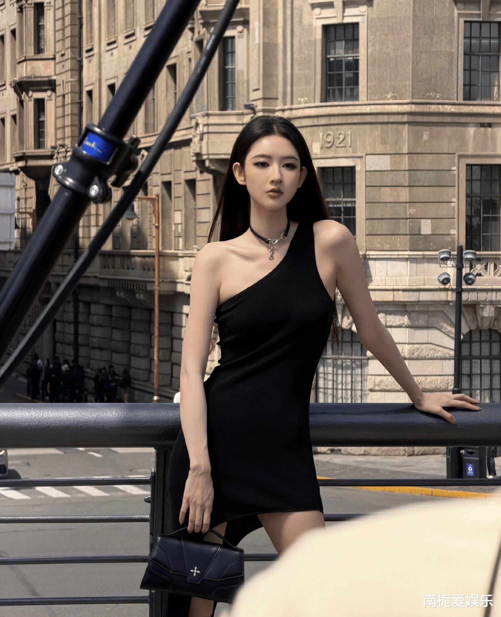 在路人毫无滤镜加持的镜头下,王玉雯给人一种“洋娃娃”既视感。她身着一袭简约黑裙,却硬是穿出了高定般的质感。172cm的身高配合北京舞蹈学院出身的挺拔仪态,让她在人群中鹤立鸡群。尤其是那优越的头肩比和“头包脸”的精致轮廓,让她即便置身于杂乱的外滩背景中,依然自带聚光灯。网友惊叹,她的冷白皮与黑长直发型相得益彰,将“冷艳”二字诠释得淋漓尽致。