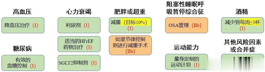 注:《2024 ESC心房颤动管理指南》强调了高血压、心力衰竭、糖尿病、肥胖、睡眠呼吸暂停以及运动能力和酒精摄入共七个因素对房颤的影响