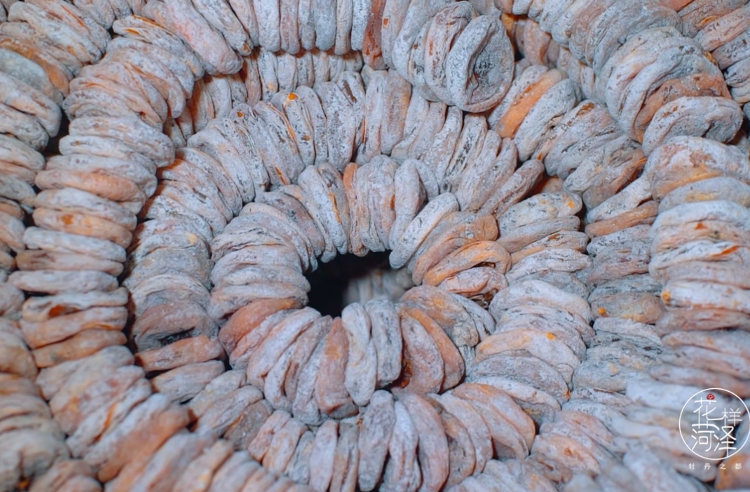 秋日的曹州,最亮眼的一抹颜色莫过于挂满枝头的“小灯笼”——镜面柿,它们不仅是秋景的点缀,更是菏泽匠人巧手创造美味的开端。经过霜打的柿子,糖分沉淀得恰到好处。采摘、削皮、晾晒……在干燥的秋风与和煦的秋日共同作用下,一颗颗橙红的镜面柿逐渐收敛水分,披上一层洁白的糖霜,蜕变为软糯香甜的曹州柿饼,掰开一枚,可见晶莹的内陷流心。入口,那股扎实的、带着阳光气息的甜润,瞬间充盈口腔,果胶的Q弹与糖霜的微沙在唇齿间交织。这枚小小的柿饼,完美封存了秋阳的温暖与慷慨,是菏泽秋天最经典的甜点,也是一代代菏泽人心中无法替代的童年记忆。