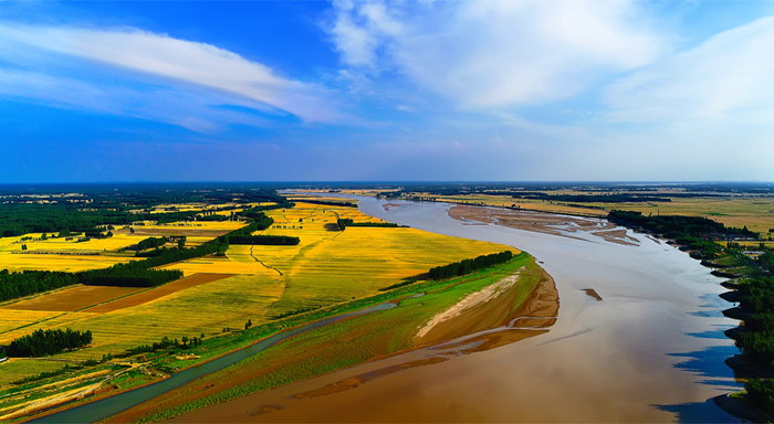 “母亲河”黄河在菏泽境内蜿蜒而过,入秋后便进入了它最温婉宁静的季节。水势变得平缓,河面如镜,映照着流云与晴空,天光水影共徘徊。岸边的防护林带换上金装,与一望无际的金色稻田交织错落,构成一幅壮阔而温暖的丰收长卷。夕阳西下时,余晖将整片河面染成橙红,归舟的渔歌与远处村庄的袅袅炊烟,共同吟唱着鲁西平原最浑厚、最富足的秋日大气象。