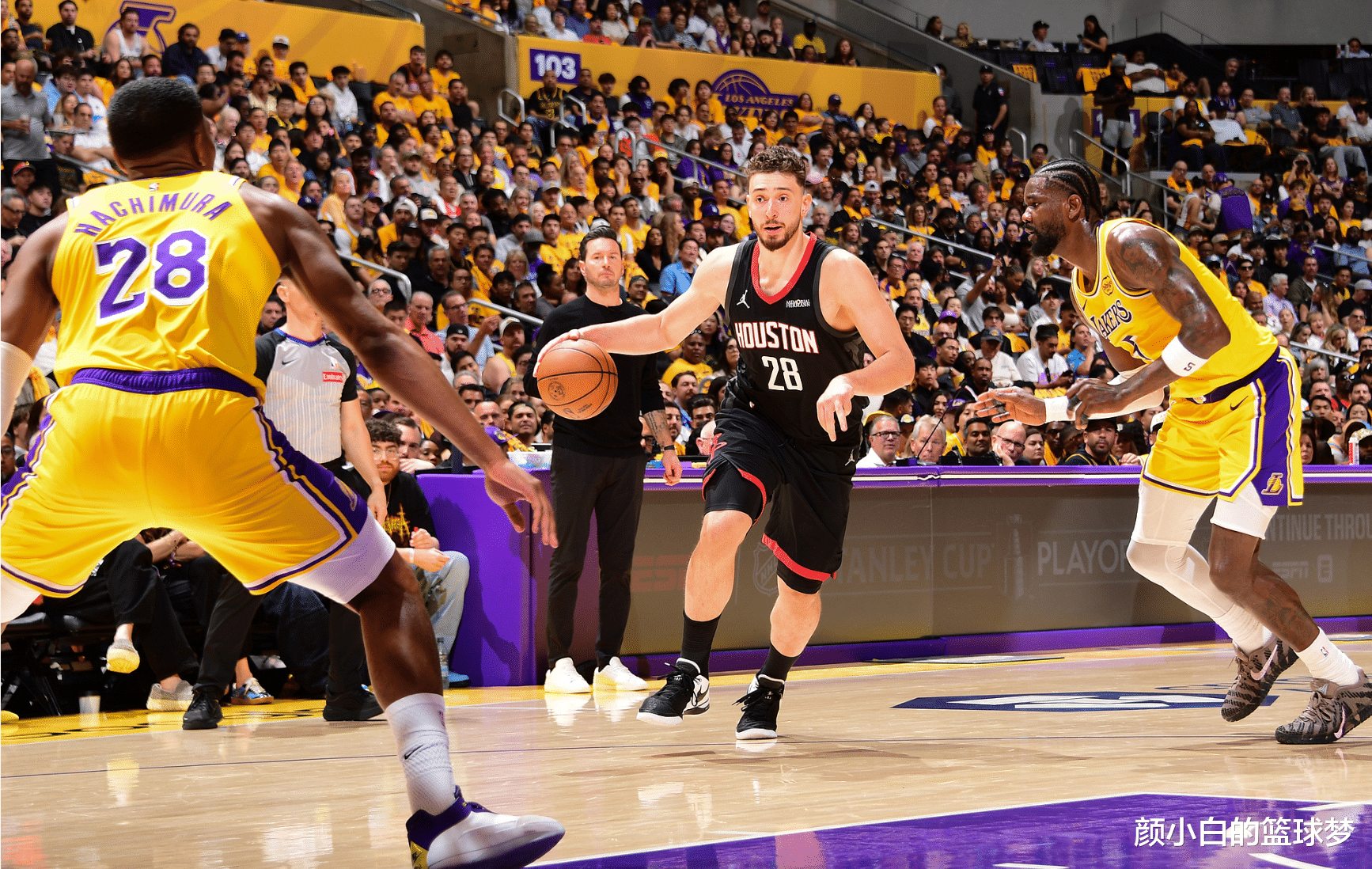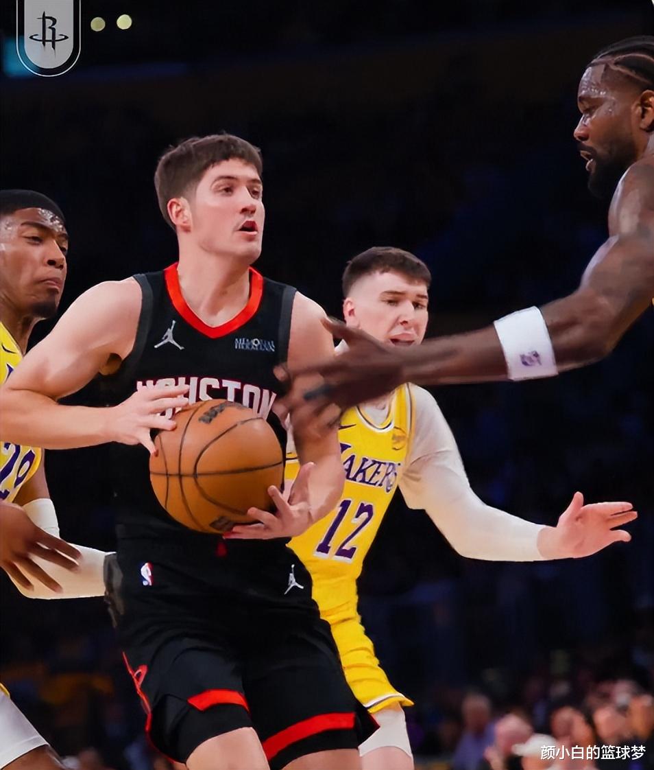 次节詹姆斯的持球影响力太强很快拉开到8分,好在谢泼德外线顶着人投三分命中,火箭还是依靠他们出色的防守将分差缩小到2分,次节末尾申京、小贾连续上罚球线追分,申京半场11分4篮板,小贾半场10分4篮板,阿门半场8分5助攻。谢泼德这个点是被湖人锤爆了的,谁逮着他都打。