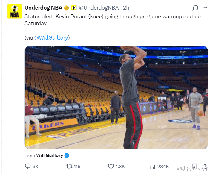 杜兰特因为右膝受伤无法出战G1,杜兰特常规赛鏖战78场没想到在队内训练中受伤。乌度卡透露杜兰特是髌骨上方跟队友相撞后遭遇戳伤,除了有疼痛感外还影响了他的移动,但X光与MRI没有结构性伤。