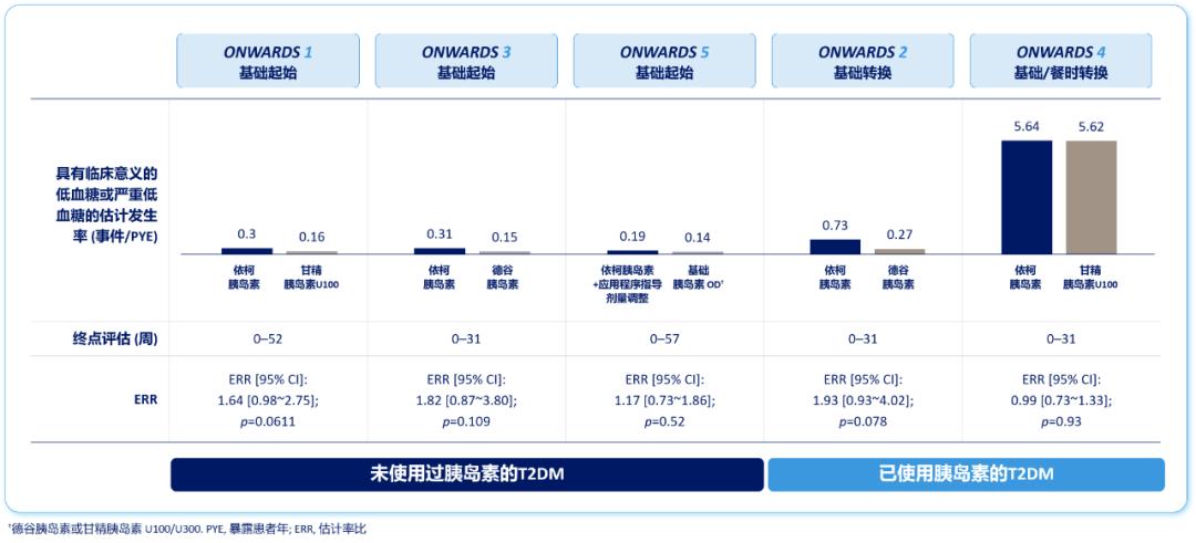 图6. ONWARDS 1~5研究:低血糖发生率概览