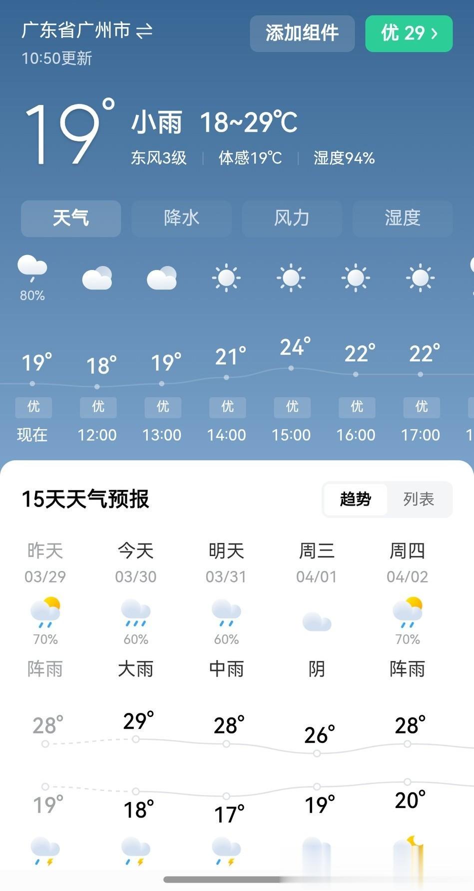 全天最高气温29℃