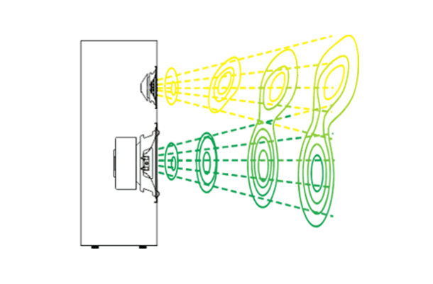 在人耳可听的20Hz-20kHz频段中,高低音物理特性差异极大。两分频系统将高频与中低频拆分,但高音单元与低音单元的物理间距会产生“相位失真”——不同频段声波到达人耳的时间差,直接导致声场模糊、结像散乱。