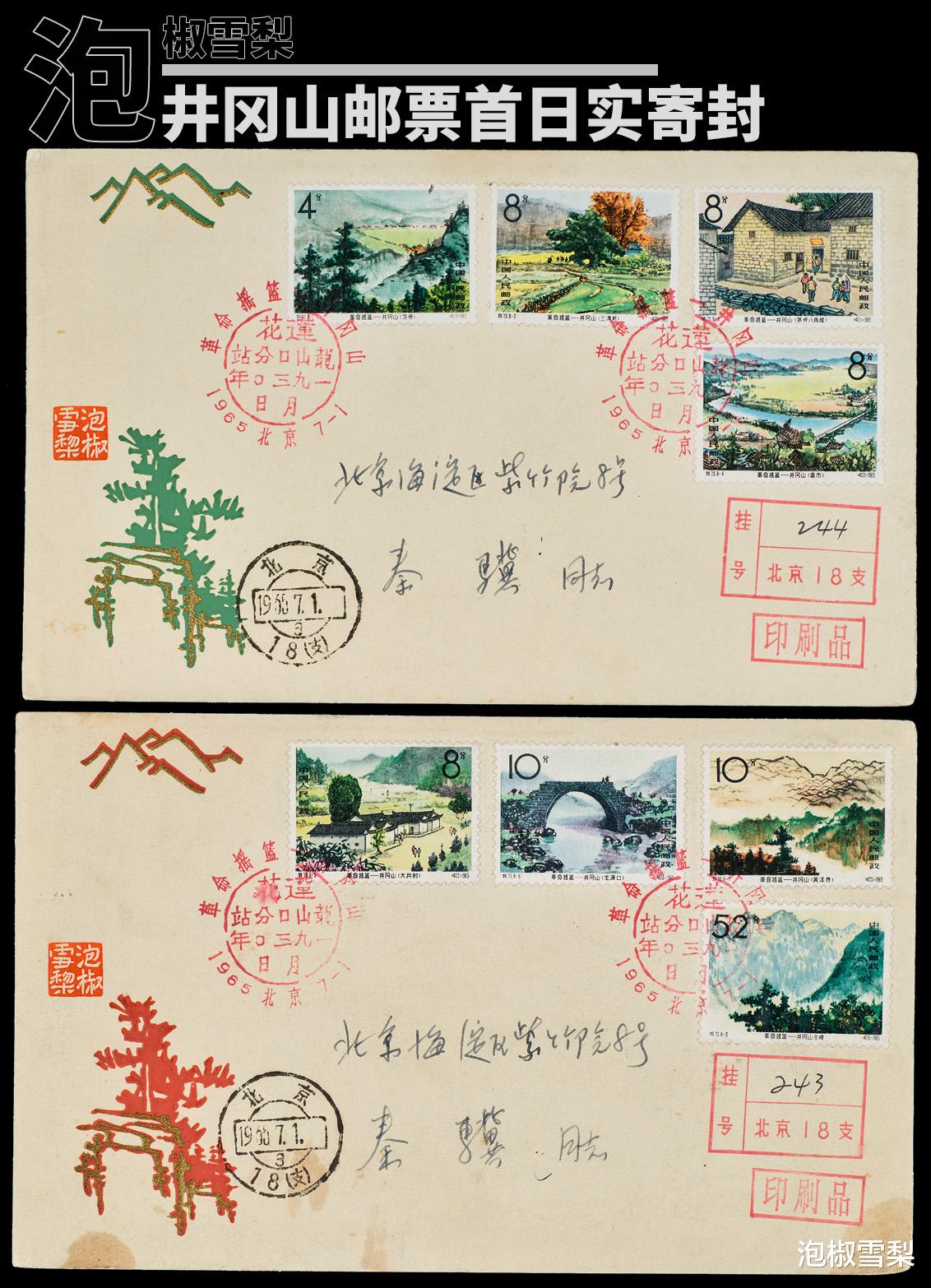 先来说说这套邮票的发行背景,1967年,江西省决定从9月8日至10月8日开展纪念毛主席创建井冈山革命根据地庆祝活动,6月,江西省邮电管理局的两名工作人员到邮电部联系发行纪念邮票,邮电部党委同意后,交邮票发行局进行设计,并于当年8月完成。邮票正式名称定为《纪念毛主席创建井冈山革命根据地四十周年》。