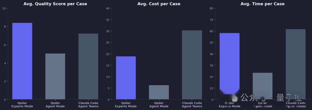 总的来看,「专家团模式」加快了开发效率,提高了代码质量。Qoder采用内部复杂任务基准对「专家团模式」进行了代码质量测试,结果显示专家团模式得分较自身智能体模式提升67%,领先Claude Code Agent Teams 16%。