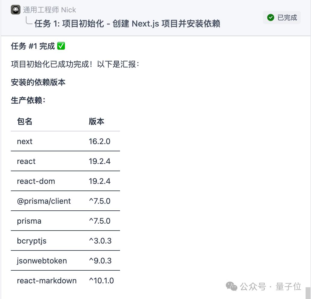 Team Lead首先派出的是通用工程师Nick,他并不负责具体的开发,因为我目前只有一个空文件夹,也缺少项目需要的环境,所以需要Nick先帮我安装依赖,以及搭建基本的项目结构,进行项目初始化。
