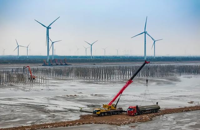 针对滩涂地形复杂、潮汐变化大等施工难题,项目团队采用钢板桩围堰加井点降水技术解决岸基升压站施工难题,设计新型登高车提升光伏区安装效率,并首创“江、海、陆、河”联运方案解决海缆运输难题。在短短4个月内完成112281根桩基施工和697866块光伏组件安装,创下安全生产和施工效率“双纪录”。