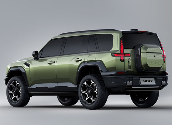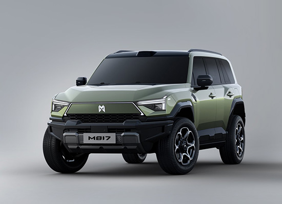外观方面,猛士M817采用雄魂美学2.0设计语言打造,前脸配备品牌标志性的狮吼格栅,配合M-LOGO灯,在科技感中暗藏野性张力。两段式发动机舱盖如狮首昂立,彰显王者威严。止戈为武LED大灯组的设计灵感来自于古代兵器“戈”,日行灯菱形花纹则是源于“越王勾践剑”。新车推出双保险杠造型,越野型保险杠直连副车架,传承硬核越野的力量感,以机械结构彰显可靠安全;城市型保险杠与车身同色,强化前脸整体感,更显科技年轻气质。