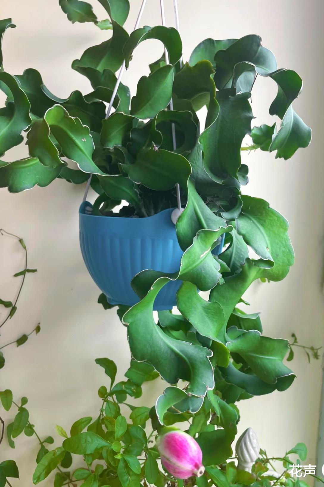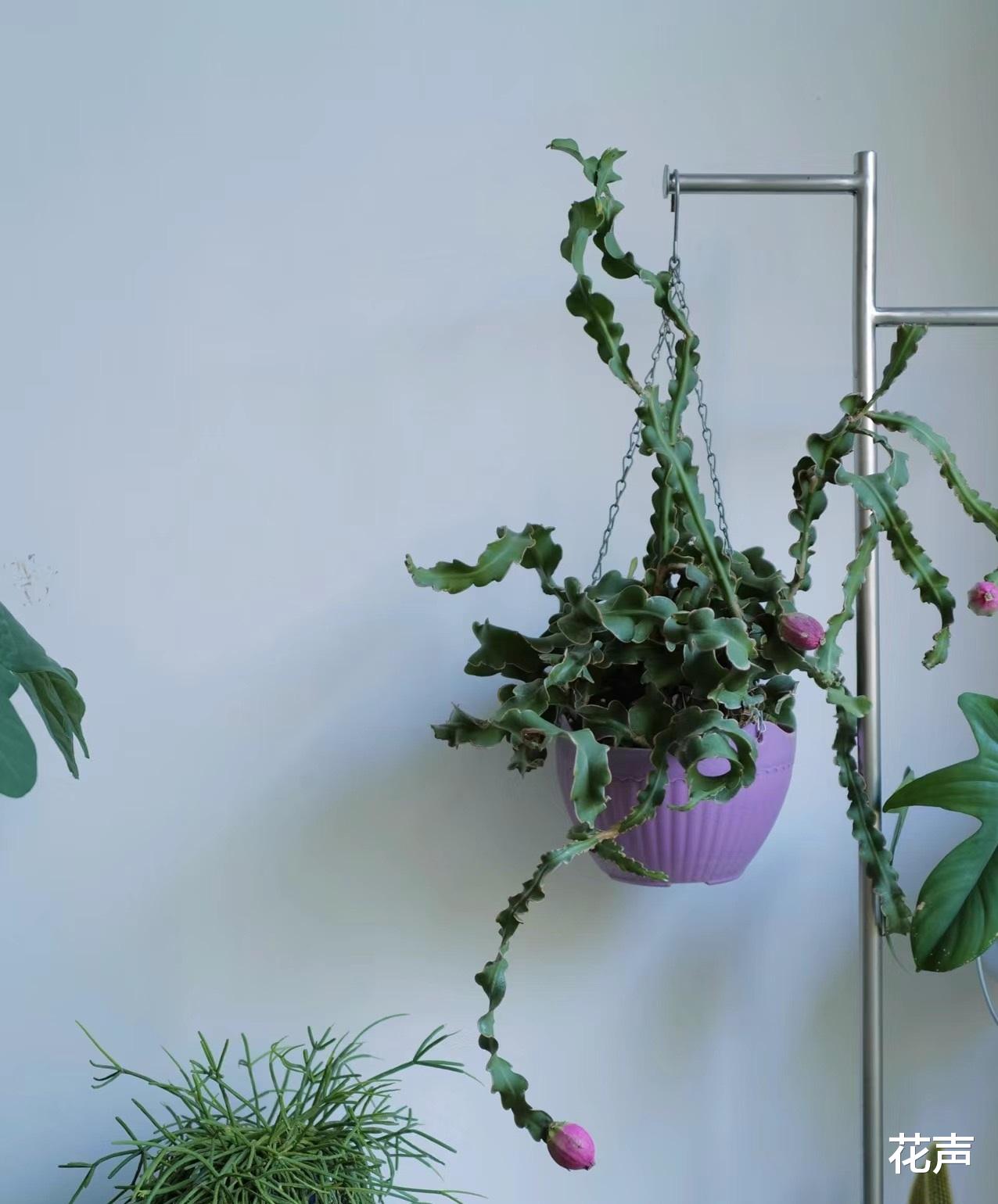 作为室内绿植来讲,很少能集观叶、观花和观果于一身的,卷叶昙花就做到了,它的茎(我们以为是叶子,其实是茎)偏软,长势杂乱无章,身上自然卷且歪曲,像八爪鱼一样,满满的“克鲁苏”风格,做垂吊植物挂起来更好看。