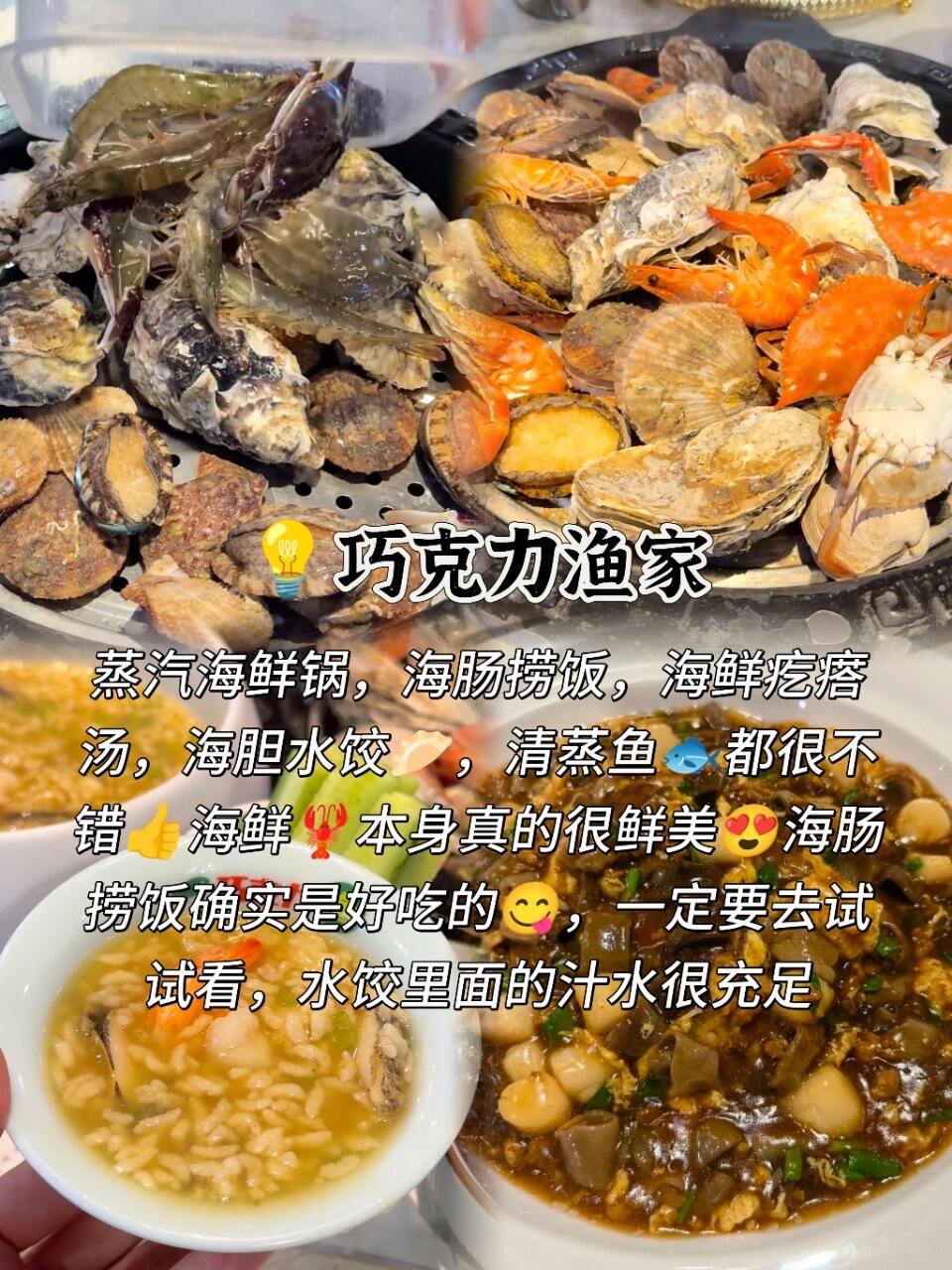 去日照想吃海鲜的话可以试试他们家,很喜欢他们家的海鲜,超级新鲜,个头还大,真的超级满足😍我们去的是大象国际店,感觉性价比蛮高的,本女大完全可以接受,点的蒸汽海鲜锅,海肠捞饭,海鲜疙瘩汤,海胆水饺🥟,清蒸鱼🐟都很不错👍海鲜🦞本身真的很鲜美😍海肠捞饭确实是好吃的😋,一定要去试试看,水饺里面的汁水很充足
