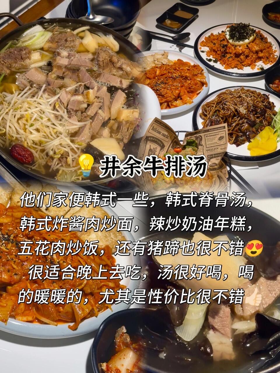 他们家便韩式一些,韩式脊骨汤,韩式炸酱肉炒面,辣炒奶油年糕,五花肉炒饭,还有猪蹄也很不错😍很适合晚上去吃,汤很好喝,喝的暖暖的,尤其是性价比很不错👍🏻