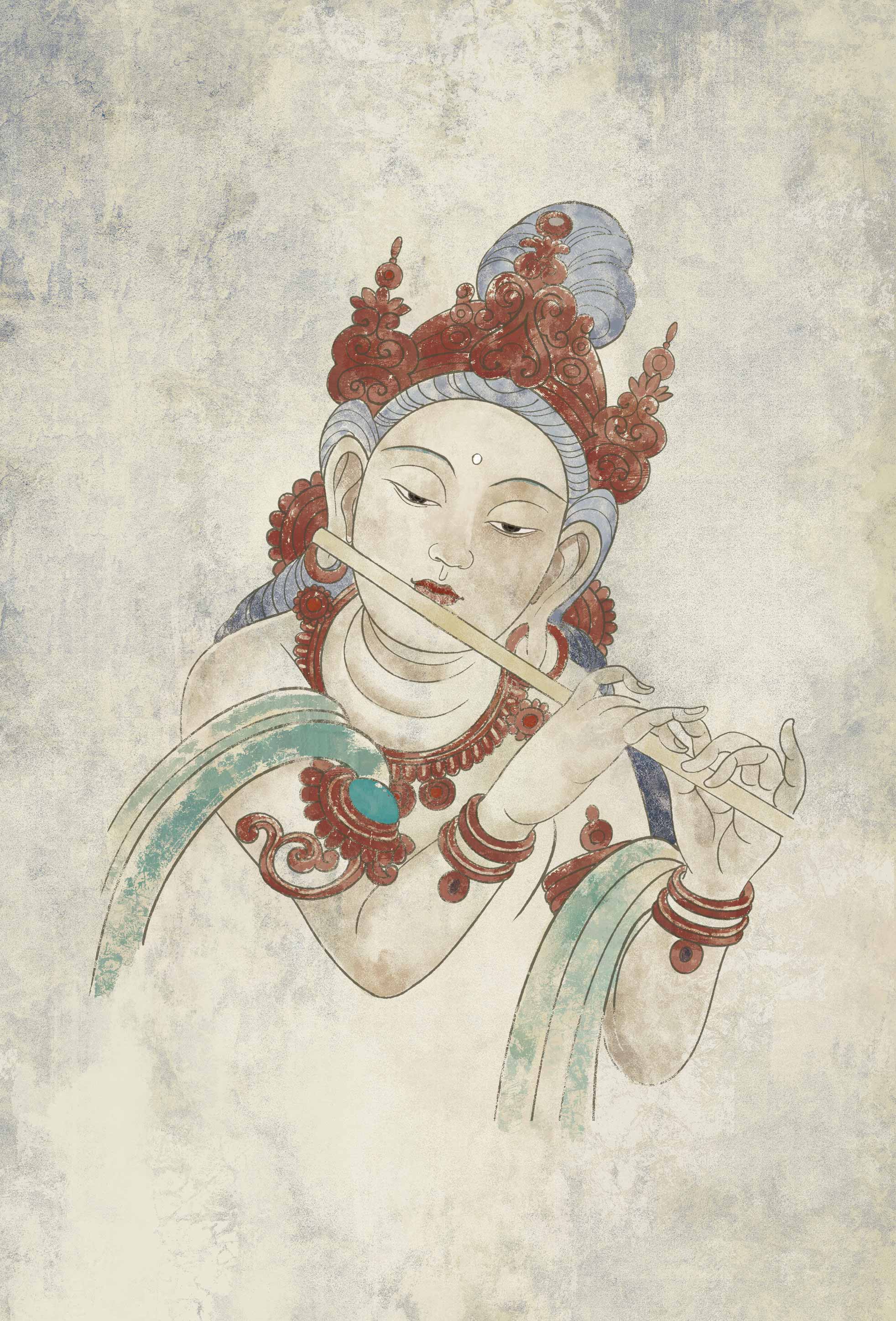 莫高窟第228(159窟) 窟·吹横笛乐伎(西魏)