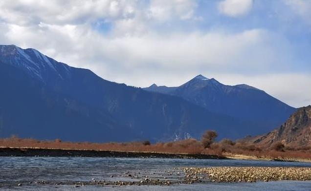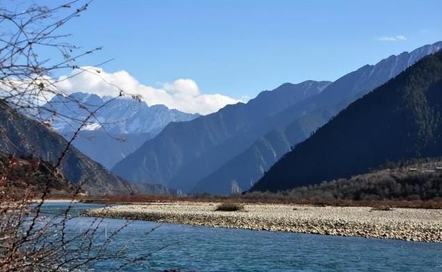 远处山峦起伏,与蓝天白云相映成趣。蓝蓝的天际下,觉得尼洋河就是一幅流动的山水画,河水缓缓流过,远处山色青翠,山上云彩飘然,意境悠远