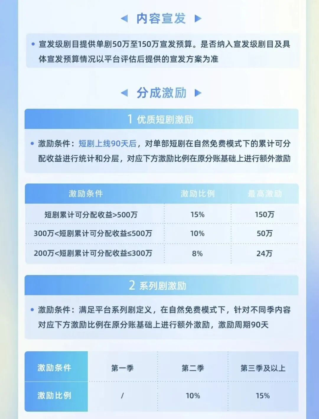 针对漫剧赛道,精品漫剧政策对S+级作品给予50-75万元保底,超头部作品保底激励可达1-3万元/分钟,且番茄原创头部IP改编享受100%改编费用补贴,推动漫剧向季播化、IP化发展。