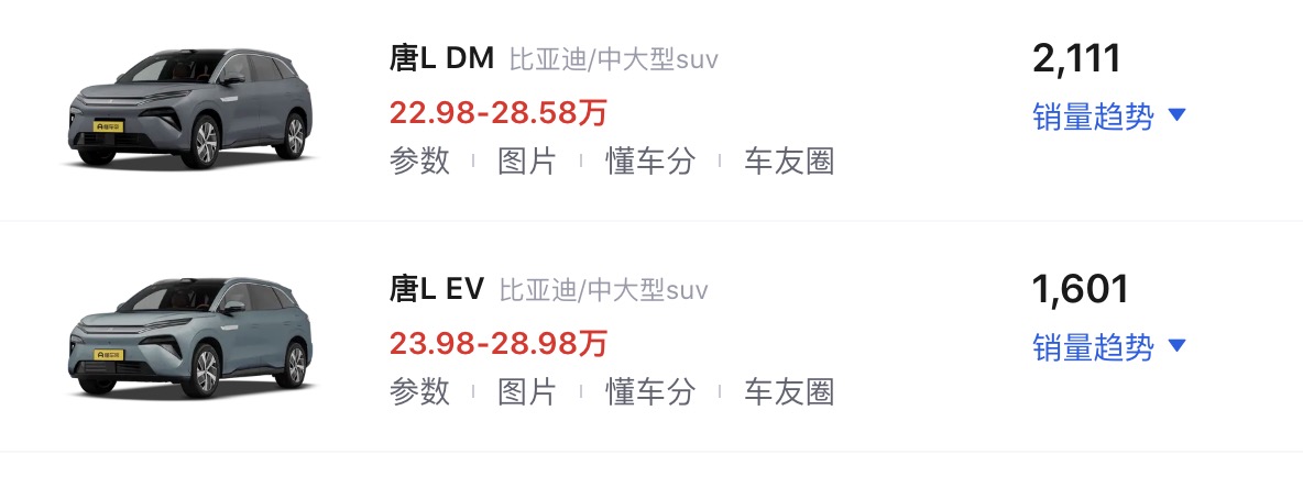 在新能源中大型SUV市场,比亚迪唐L DM潜在竞品包括广汽传祺向往S9(指导价22.99万-25.99万元)、智己LS6(指导价21.29万-28.49万元)等。比亚迪唐L EV潜在竞品为理想i6(指导价24.98万-26.98万元)、智界R7纯电(指导价24.98万-33.98万元)等。参考销量,比亚迪唐L DM/EV 8月销量分别为2111辆和1601辆。有关比亚迪品牌的更多消息,我们将保持关注。