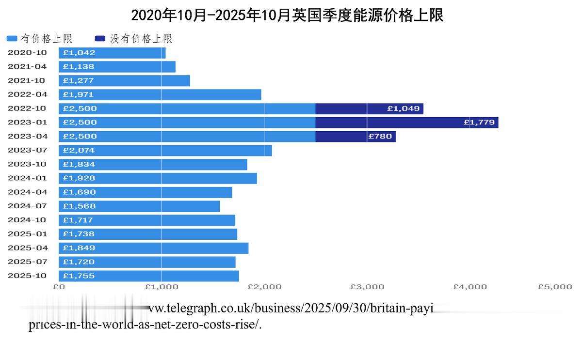 英国能源监管机构,主要根据批发市场的能源成本每三个月更改一次价格的上限,将于2025年11月25日公布2026年第一季度的价格上限,预计2026年春季英国的电价还将上涨100英镑。