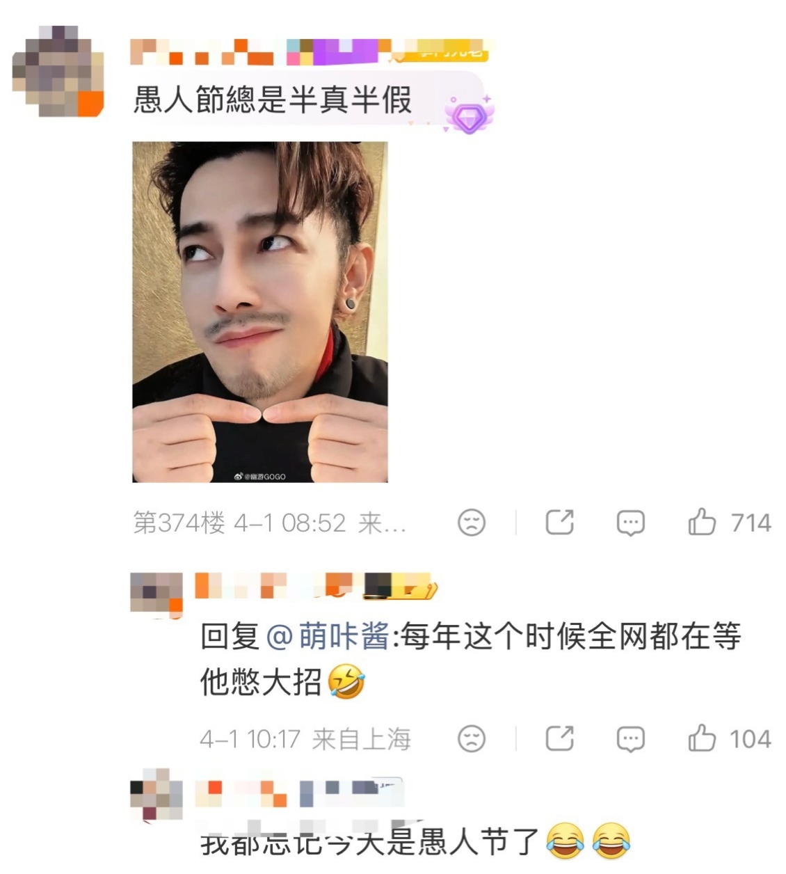 随着事件的发酵,社交媒体上已经出现了大量二次创作,粉丝们纷纷晒出自己被"骗"的经历,互相调侃着"每年上一当,当当不一样"。这种自发性的内容生产进一步扩大了事件的影响力,让汪东城的愚人节玩笑从个人行为演变成了一场小型的网络狂欢。在这个过程中,每个人都既是观众也是参与者,共同完成了一场关于信任与幽默的集体演练。