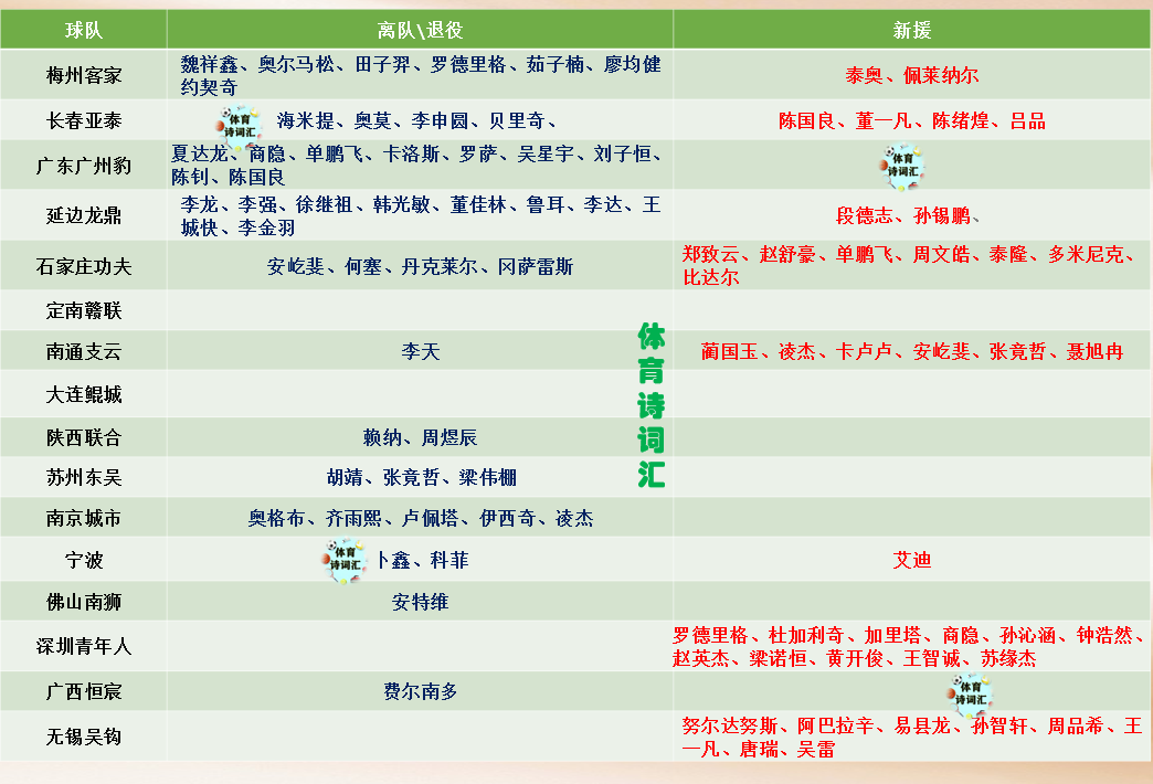 7、南通支云【离队】李天;【进队】蔺国玉、凌杰、卡卢卢、安屹斐、张竟哲、聂旭冉。
