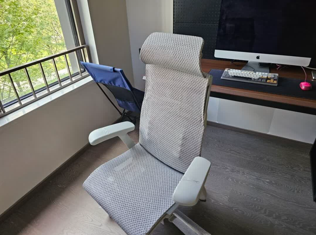 舒适度:座椅弹性适中,后仰顺滑,150°后仰配隐藏式脚踏可短时间午睡。自研网布透气耐用,坐感偏均衡,既不会太软陷下去,也不会太硬僵直,长时间办公或偶尔休息都能舒服应对。