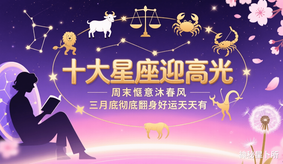 周末的春风,温柔又治愈,十大星座在这份惬意中,慢慢沉淀,静静收获。不必急于求成,不必盲目攀比,属于你的高光时刻,终会如期而至;属于你的好运惊喜,终会不期而遇。三月底,是结束,更是新的开始,是彻底翻身的转折点,也是好运连绵的起点。