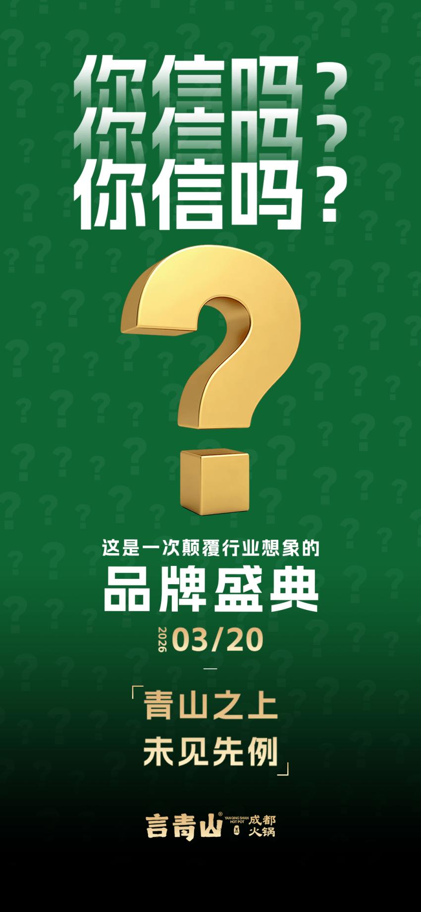 3月12日,数十位深耕行业多年的老炮级人物,在同一时间转发了一张品牌活动的悬念海报,主角是一个主打“清油火锅”的成都火锅品牌“言青山”。海报中,言青山透露要在3月20号做一场“颠覆行业认知的品牌盛典”。