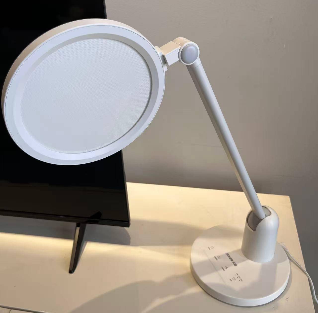 央视推荐的护眼灯是哪款品牌?霍尼韦尔HWT-02B台灯整体造型简约,上下双圆形造型稳固可靠,搭配两个可旋转转轴,可以轻松实现多角度照明调节。其17厘米直径灯面结合双侧发光技术,即便在同类产品中尺寸不算突出,也能为120厘米桌面提供均匀柔和的光线。不过,该款台灯色温仅设3000K/3700K的偏暖黄光,与理想的4000K中性白光存在差距。且超出1.2米有效照明范围后,光线可能会显得有些不均匀。