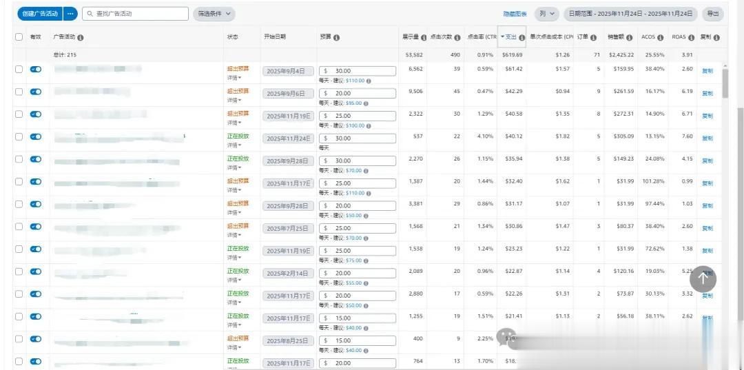 黑五当天广告表现情况 :点击490次, 花费619.69 , 广告订单71单,销售额$2425.22, ACOS是25.55%