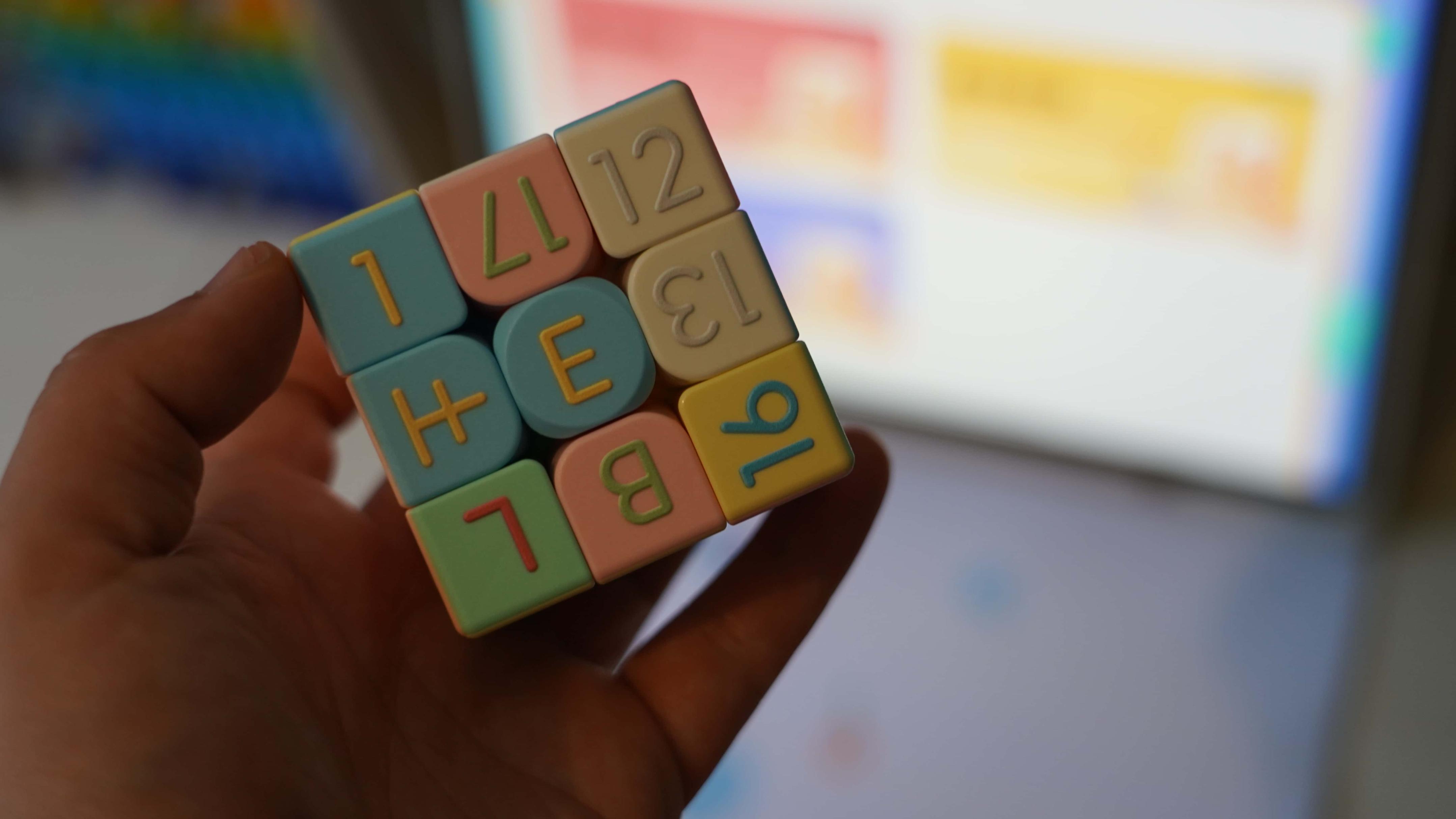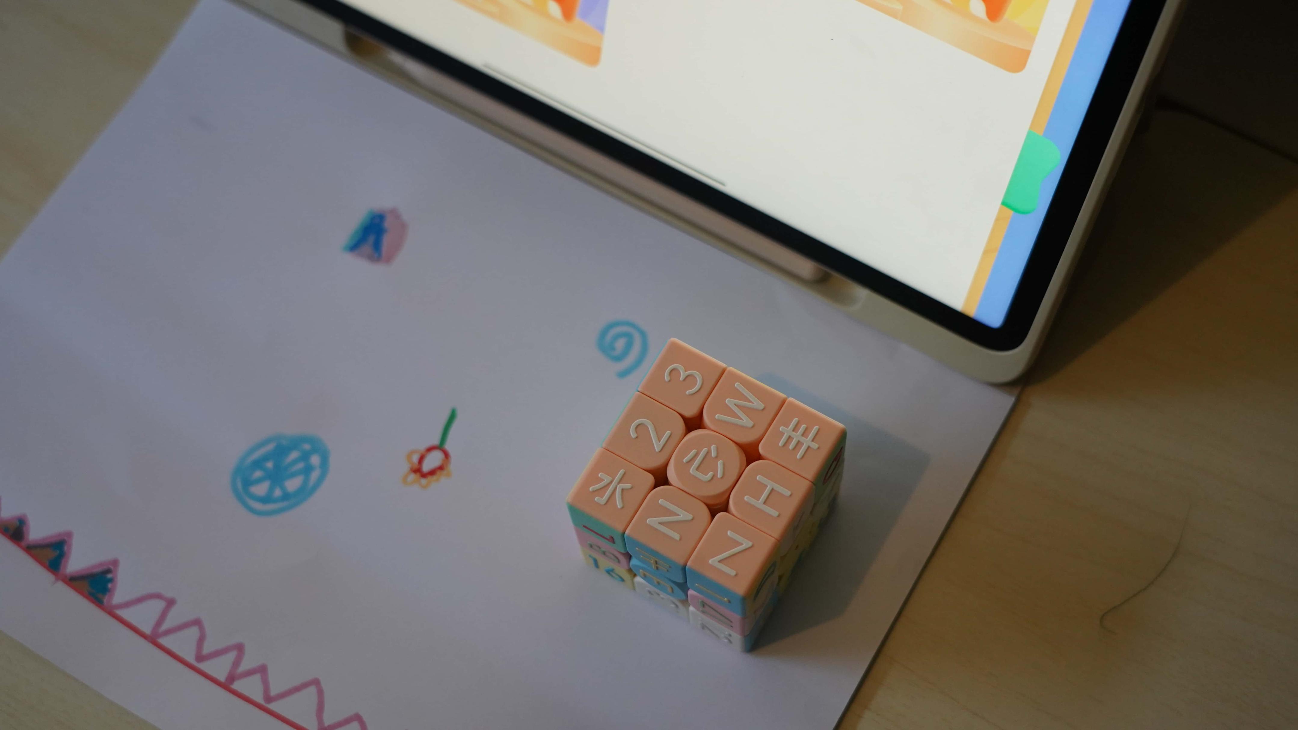 3. 触感训练,可以闭眼通过触摸的方式感受魔方上的内容,也可以闭眼通过触摸的方式找到某一个字符,这样可以锻炼触觉和记忆力。